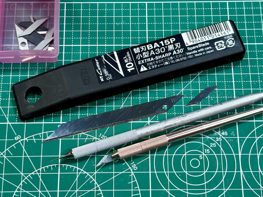 模型製作における刃物の切れ味は、そのまま「安全性」に直結します。ホルダー本体も強度が足りず折れたりすることがあるため、必ず「オルファ(OLFA)」や「NTカッター」といった専門メーカー品を購入してください。数百円で買える安心と精度は、何物にも代えがたい投資です。