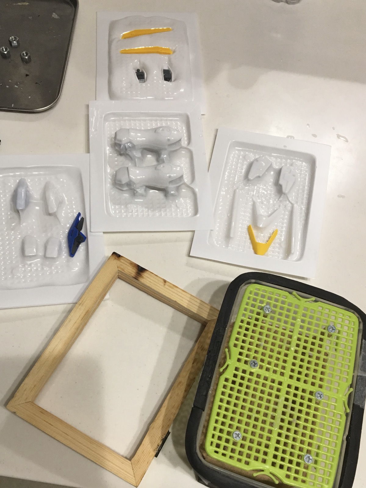 BMCのダンモを使用。ただ削るだけでなく、三角やすりを使ってカドをしっかり出すことで、仕上がりのキレが格段に良くなります。 - マイナスモールドの配置: