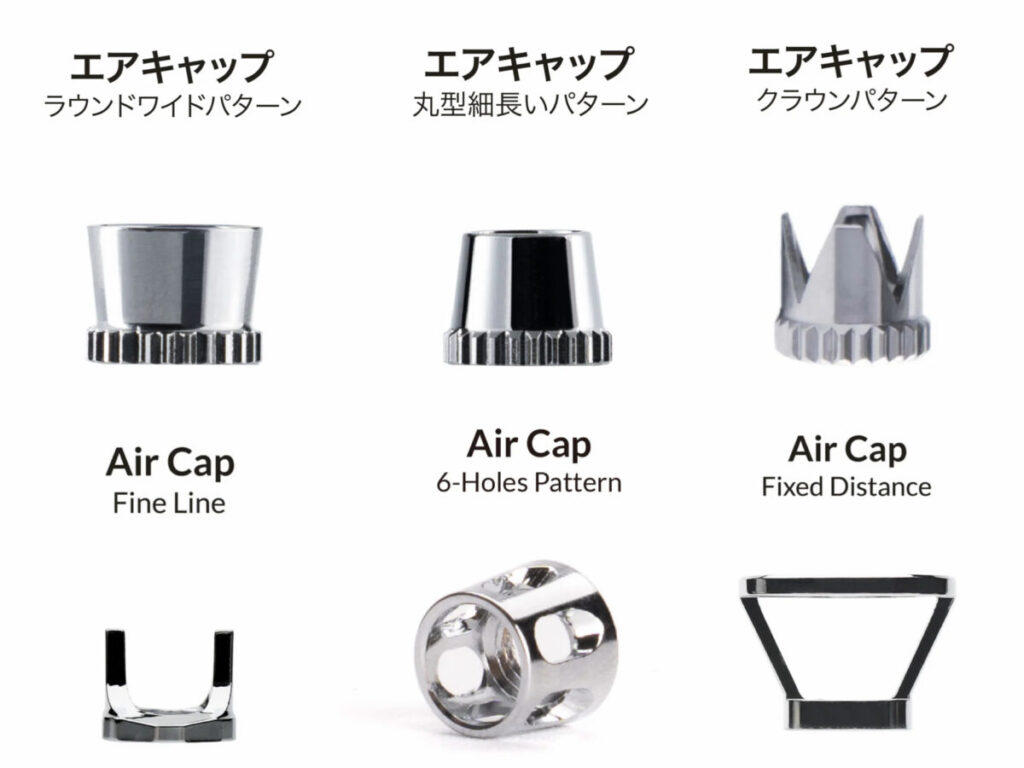 それぞれのキャップが「どのようにエアーを整え、塗膜に影響を与えるのか」。