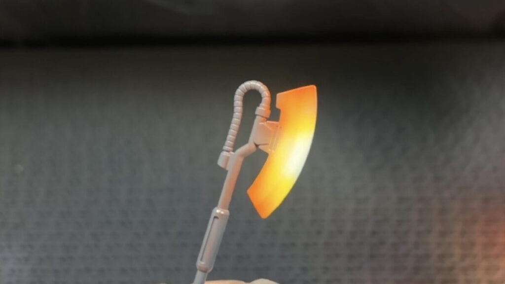 この変化は、まさに「道具でここまで変わるのか」と実感できるレベルでした。今回はザクのヒートホークを使い、高熱の塗装表現に挑戦しました。