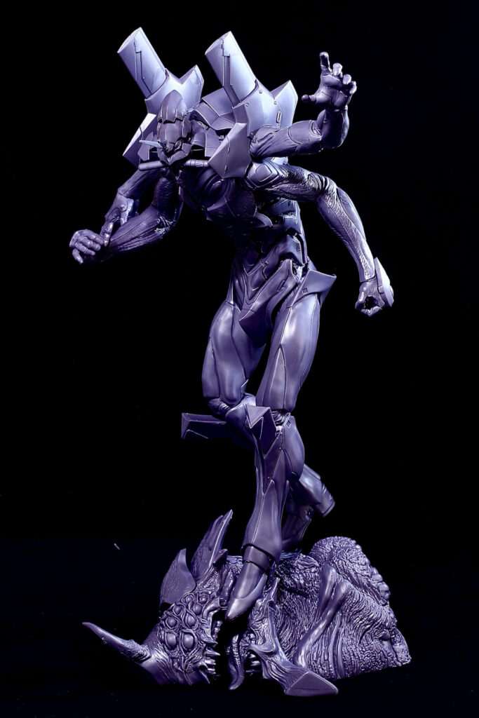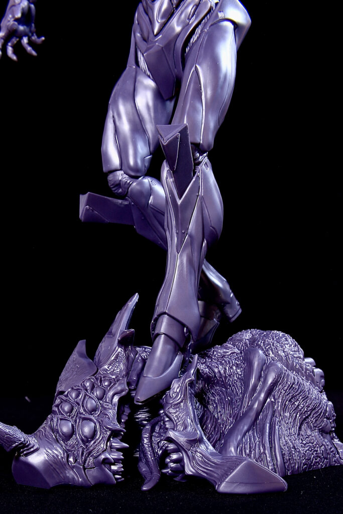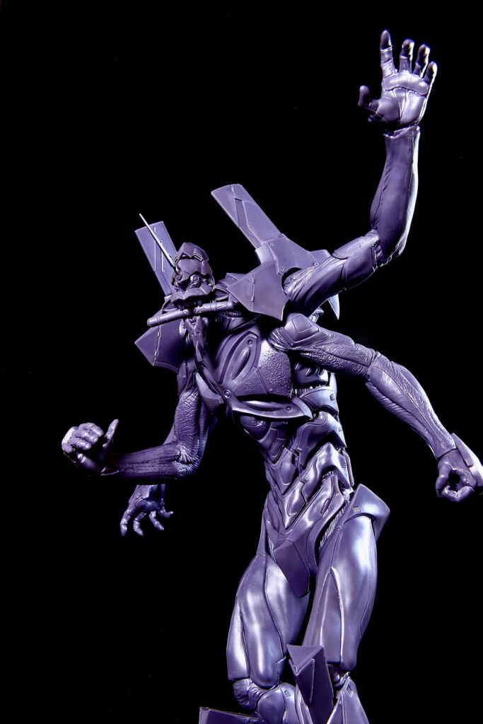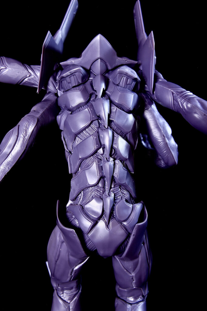 特に四本腕については、「肩甲骨も4枚あるはずだ」など徹底した構造的裏付けが成されています。ポージングも『裏CODE999」を発動したエヴァンゲリオン新2号機aの攻撃を退け、エントリープラグを噛み砕く劇中の衝撃的なシーンを凝縮。オリジナルのポーズになっています。独自の解釈と量感を与えられたロンギヌスの槍と共に、組み立てるだけでその造形密度を存分に味わえる仕様となっています。